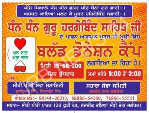 ਜਲੰਧਰ ( ਜੇ ਪੀ ਬੀ ਨਿਊਜ਼ 24 ) : ਧੰਨ-ਧੰਨ ਸਾਹਿਬ ਸ਼੍ਰੀ ਗੁਰੂ ਹਰਗੋਬਿੰਦ ਸਾਹਿਬ ਜੀ ਦੇ ਪਾਵਨ ਪ੍ਰਕਾਸ਼ ਪੁਰਬ ਦੇ ਸਬੰਧ ਵਿੱਚ ਮੀਰੀ ਪੀਰੀ ਸੇਵਾ ਸੁਸਾਇਟੀ ਦੀ ਤਰਫੋਂ ਵਿਸ਼ਾਲ ਖੂਨਦਾਨ ਕੈਂਪ ਜੋ ਕਿ 15/5 ਦਿਨ ਬੁੱਧਵਾਰ ਨੂੰ ਮੀਰੀ ਪੀਰੀ ਪਾਰਕ ਭਈਆ ਮੰਡੀ ਚੌਂਕ ਵਿਖੇ ਲਗਾਇਆ ਜਾਵੇਗਾ। ਸਵੇਰੇ 9:00 ਵਜੇ ਤੋਂ ਦੁਪਹਿਰ 2:10 ਵਜੇ ਤੱਕ ਕਰਵਾਇਆ ਜਾ ਰਿਹਾ ਹੈ, ਜਿਸ ਵਿੱਚ ਵਿਸ਼ੇਸ਼ ਤੌਰ ‘ਤੇ ਸ਼ੀਤਲ ਅੰਗੂਰਾਲ, ਵਿਧਾਇਕ ਰਮਨ ਅਰੋੜਾ, ਡਿਪਟੀ ਮੇਅਰ ਸਿਮਰਨਜੀਤ ਸਿੰਘ ਬੰਟੀ, ਸਾਬਕਾ ਸੀਨੀਅਰ ਡਿਪਟੀ ਮੇਅਰ ਕਮਲਜੀਤ ਸਿੰਘ ਭਾਟੀਆ, ਸੀਨੀਅਰ ਭਾਜਪਾ ਆਗੂ ਰੋਬਿਨ ਸਾਂਪਲਾ ਵਿਸ਼ੇਸ਼ ਤੌਰ ‘ਤੇ ਪਹੁੰਚਣਗੇ।