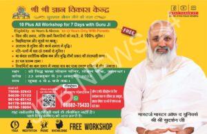 वर्कशॉप का समय सुबह 4 से 6 बजे तक है। इस वर्कशॉप में मास्टरज मास्टर ऑफ यूनिवर्स श्री श्री सुदर्शन जी साधकों को खुशहाल जीवन जीने की कला सिखाएंगे। अगर आप इस वर्कशॉप का हिस्सा बनना चहते हैं तो आपका इस वर्कशॉप में सोमवार को आना जरुरी है।