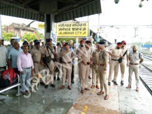 ਜਿਸ ਵਿੱਚ ਥਾਣਿਆਂ ਦੇ ਮੁਖੀ, ਡਾਗ ਸਕੁਐਡ ਟੀਮਾਂ, ਬੰਬ ਨਿਰੋਧਕ ਦਸਤੇ ਅਤੇ ਭਾਰੀ ਤਦਾਦ ਵਿਚ ਕਮਿਸ਼ਨਰੇਟ ਜਲੰਧਰ ਦੇ ਥਾਣਿਆਂ ਦੀ ਪੁਲਿਸ ਫੋਰਸ ਵੱਲੋਂ ਗਹਿਨ ਚੈਕਿੰਗ ਕੀਤੀ ਗਈ ਉਥੇ ਤੈਨਾਤ ਜੀ ਆਰ ਪੀ, ਆਰ ਪੀ ਐਫ ਅਤੇ ਕਮਿਸ਼ਨਰੇਟ ਪੁਲਿਸ ਮੁਲਾਜ਼ਮਾ ਨੂੰ ਚੁਕੰਨੇ ਹੋ ਕੇ ਡਿਊਟੀ ਕਰਨ, ਸ਼ੱਕੀ ਪੁਰਸ਼ਾਂ ਦੀ ਚੈਕਿੰਗ ਕਰਨ ਆਉਣ ਜਾਣ ਵਾਲੀਆ ਟ੍ਰੇਨਾਂ ਦੀ ਚੈਕਿੰਗ ਕਰਨ ਲਈ ਕਿਹਾ ਅਤੇ ਕਿਸੇ ਤਰ੍ਹਾਂ ਦੀ ਵੀ ਜਾਣਕਾਰੀ ਮਿਲਣ ਪਰ ਫੌਰੀ ਤੌਰ ਤੇ ਪੁਲਿਸ ਅਧਿਕਾਰੀਆਂ ਅਤੇ ਕੰਟਰੋਲ ਰੂਮ ਤੇ ਇਤਲਾਹ ਦੇਣ ਲਈ ਕਿਹਾ ਗਿਆ।