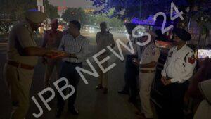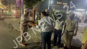 रात्रि ड्यूटी पर तैनात पुलिस अधिकारियों को मिठाई खिलाकर सम्मानित किया गया और उनकी समर्पित सेवा की सराहना की गई –