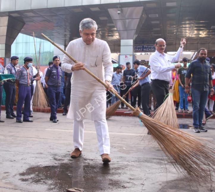 रेल, संचार और इलेक्ट्रॉनिक्स और सूचना प्रौद्योगिकी मंत्री श्री अश्विनी वैष्णव ने आज रेलवे पर स्वच्छता पखवाड़े के अंतर्गत चलाए जा रहे स्वच्छता अभियान के लिए हज़रत निज़ामुद्दीन रेलवे स्टेशन का दौरा कर स्वच्छता कार्यों की शुरूआत की । इस अवसर पर रेलवे बोर्ड के अध्यक्ष एवं सीईओ श्री वी.के. त्रिपाठी, उत्तर रेलवे के महाप्रबंधक, श्री आशुतोष गंगल, दिल्ली मंडल के मंडल रेल प्रबंधक, श्री डिम्पी गर्ग और रेलवे बोर्ड एवं उत्तर रेलवे के अनेक वरिष्ठ रेल अधिकारी भी उपस्थित थे ।