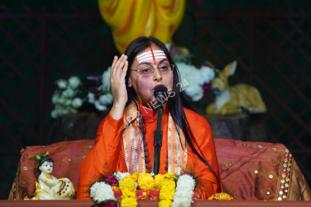 दिव्य ज्योति जाग्रति संस्थान की ओर से 17 नवंबर से 23 नवंबर तक चल रही, साईं दास स्कूल ग्राउंड, जालंधर में श्रीमद्भागवत साप्ताहिक कथा ज्ञानयज्ञ के सप्तम् दिवस की सभा में सर्व श्री आशुतोष महाराज जी की शिष्या साध्वी सुश्री वैष्णवी भारती जी ने बहुत ही सुसज्जित ढंग से भगवान श्रीकृष्ण जी के अलौकिक एवं महान व्यक्तित्व के पहलुओं से अवगत करवाया। रूक्मिणी विवाह प्रसंग के माध्यम से सीख मिलती है कि प्रभु उस आत्मा का वरण करते हैं जिसमें उन्हें प्राप्त करने की सच्ची जिज्ञासा हो ।