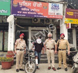 ਪੁਲੀਸ ਕਮਿਸ਼ਨਰ ਸ੍ਰੀ ਸਵਪਨ ਸ਼ਰਮਾ ਦੀ ਅਗਵਾਈ ਹੇਠ ਜਲੰਧਰ ਕਮਿਸ਼ਨਰੇਟ ਪੁਲੀਸ ਨੇ ਇੱਕ ਮੁਲਜ਼ਮ ਨੂੰ ਗ੍ਰਿਫ਼ਤਾਰ ਕਰਕੇ ਉਸ ਕੋਲੋਂ ਇੱਕ ਮੋਟਰਸਾਈਕਲ ਬਰਾਮਦ ਕਰਕੇ ਲੁੱਟ ਦੀ ਵਾਰਦਾਤ ਨੂੰ ਸੁਲਝਾ ਲਿਆ ਹੈ।